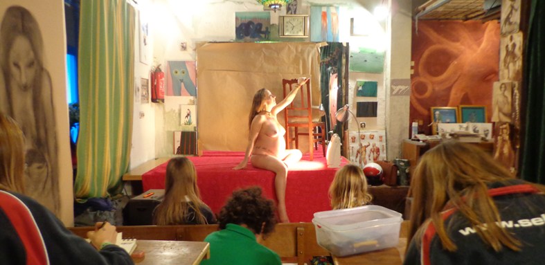 The idea behind the nude drawing workshop for children grew out of the necessity to strengthen a child’s exploration of drawing life; to teach them to observe and to view the human body with the respect that it deserves as a human being, and not merely as a subject. The body possesses and internal energy, and drawing the nude body allows the child to enter into a process of observation which approaches meditation: his or her gaze acquires a more profound dimension through drawing. Exercises throughout the workshop also serve to develop multidisciplinary creativity, such as literary creation in the form of stories which the children will display to the group, and transformation exercises in which the model changes appearance and thereby stimulates the imagination of the young artists during short time periods. The unique experiences of the children shine through in their drawings.