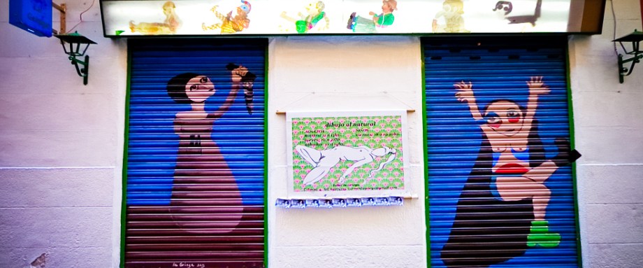 The space is 30 square meters with a bathroom and interior patio, and is divided into a space for showing the artist’s work and a separate workspace. The interior of the workshop varies depending on the artist’s present work. Given the location of the Taller La Griega, it also serves as a window display for the neighborhood, showcasing the various works of Carmen la Griega as well as drawings of children who participate in her workshops.